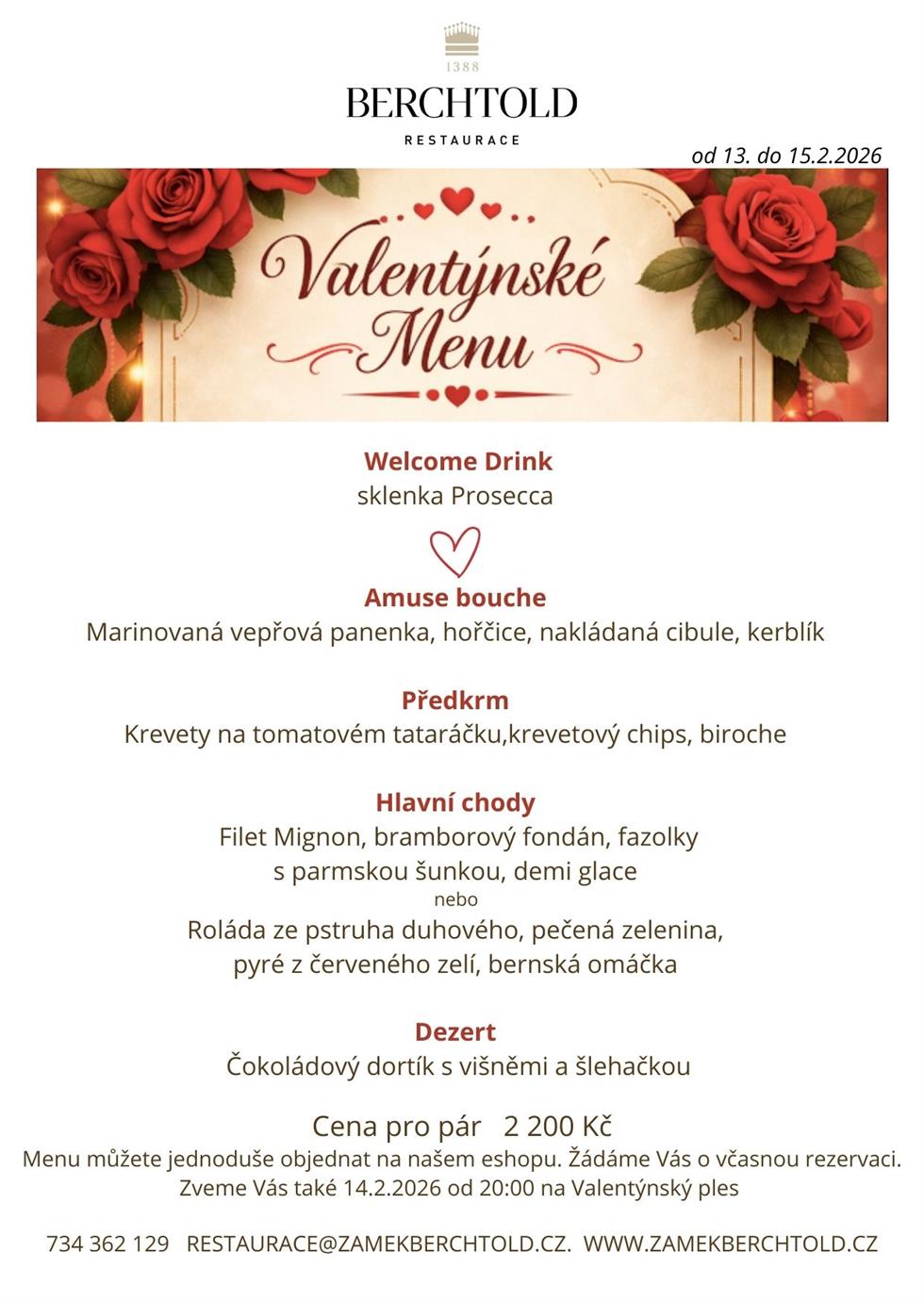 Srdečně Vás zveme na Valentýnské menu.