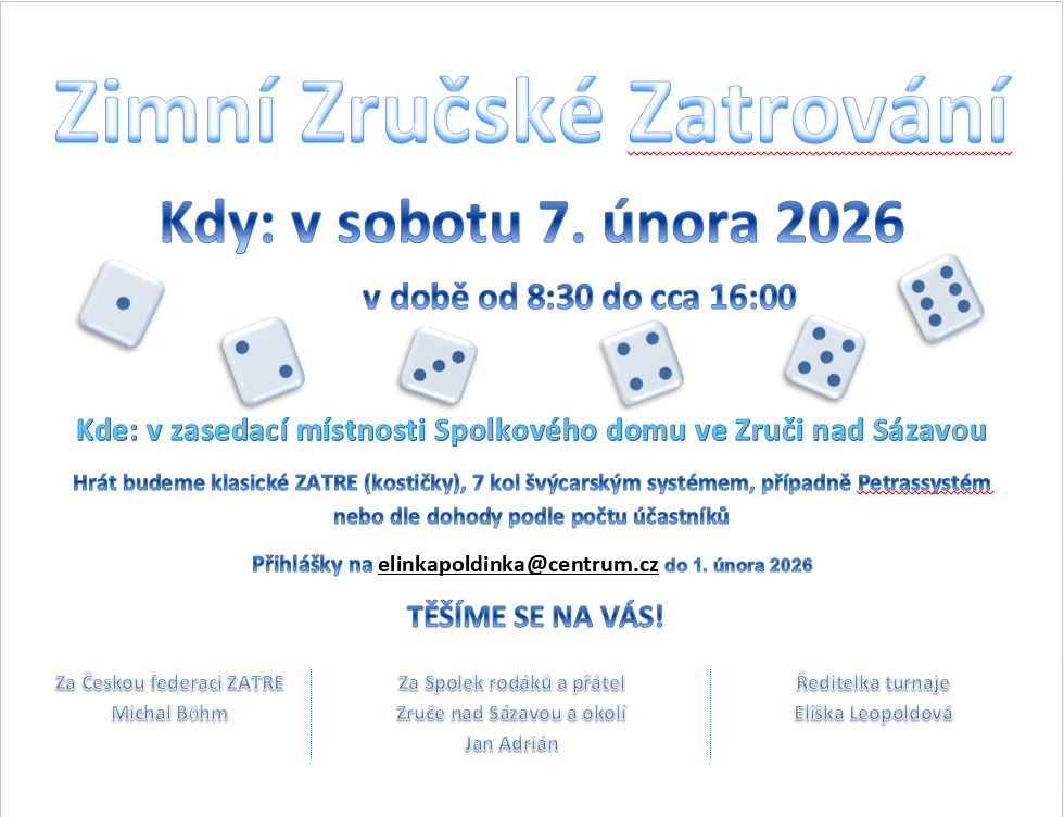 Srdečně vás zveme na tradiční turnaj v kostkové hře ZATRE.